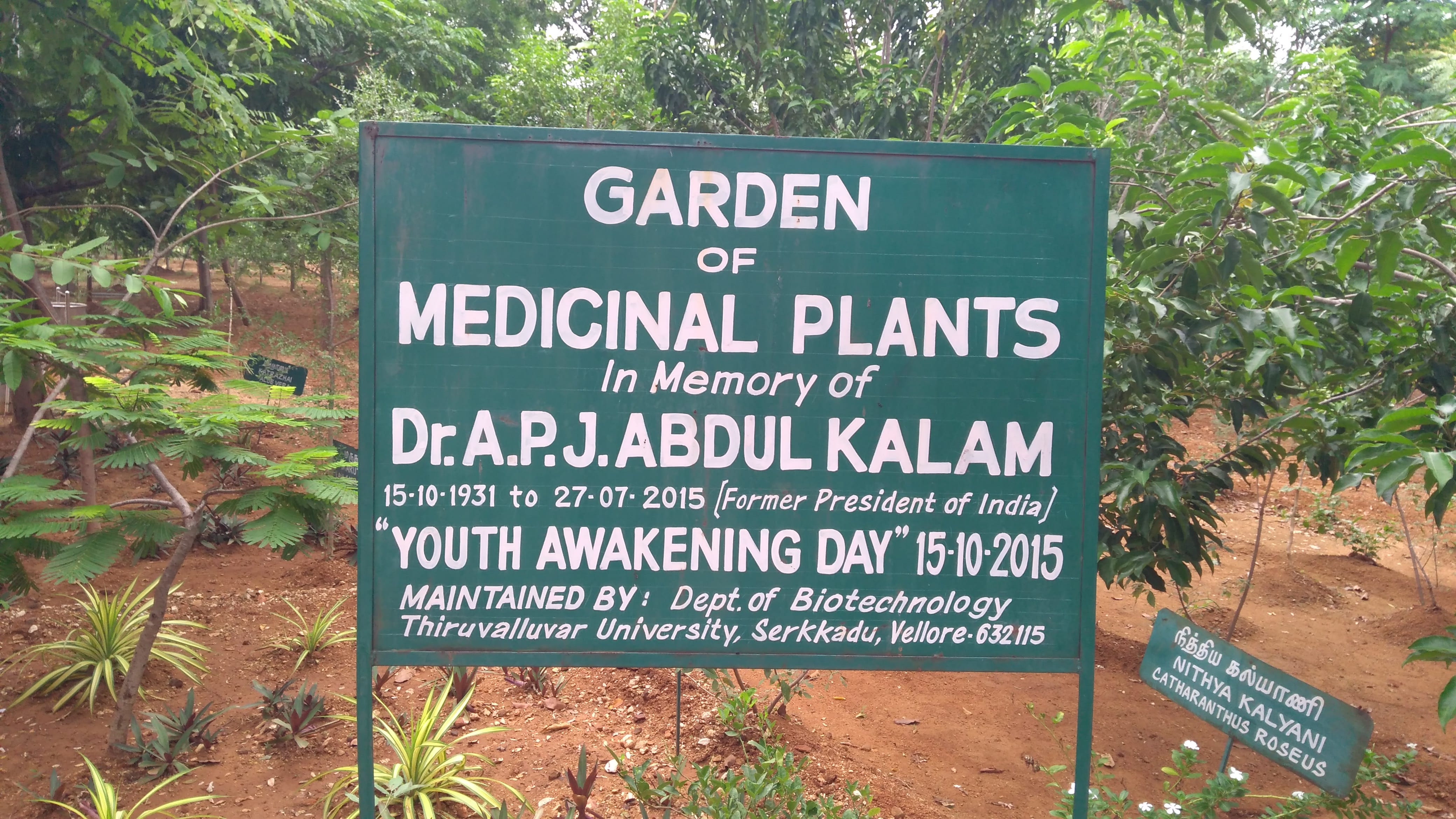 Plant is an important source of medicine and plays a key role in world health. Medicinal herbs or plants have been known to be an important potential source of therapeutics or curative aids. Thiruvalluvar University campuses, Vellore maintain a Herbal Garden, it is very useful to students, faculty and public, who wish to know more about the medicinal plants.